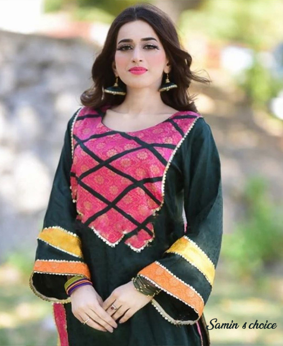 decorated with colorful Jamawar Patches and golden laces that add a splash of richness.